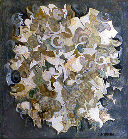 Griffin explored the texture and pattern of his own signature as a background and element of these paintings.